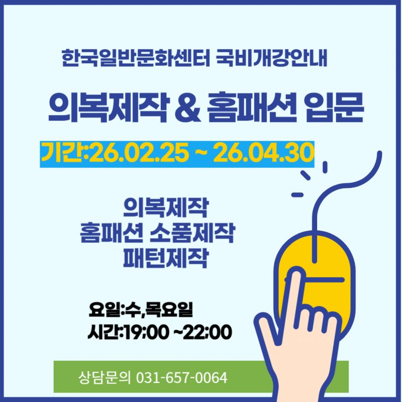 • 분류 국가고시반 인테리어26년 2월 국비훈련▶의복제작&홈패션 입문(야간반) Info. 25-12-22 11:28    5회    0건